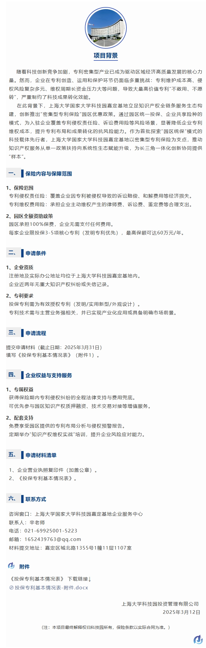 政策速遞 | 園區(qū)優(yōu)惠政策→“密集型專利保險(xiǎn)” 等你來申領(lǐng)